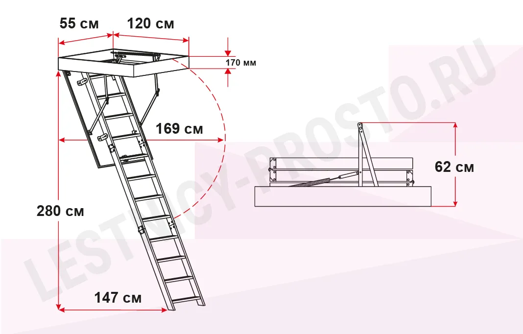 Чердачная лестница OMAN POLAR 55×120 см, h-280 см