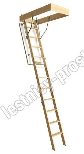 Простая и удобная чердачная лестница из сосны.
