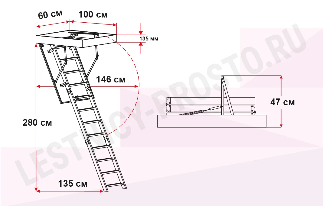 Чердачная лестница с люком OMAN COMPACT TERMO 60х100 см, h-280 см