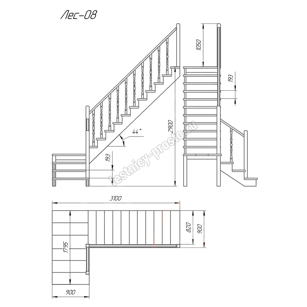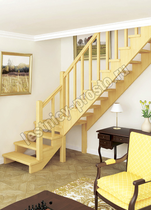 Базовый комплект включает в себя деревянные элементы лестницы и ограждения без какого-либо покрытия. Лестница поставляется в разобранном виде, упакованная в ящик. Монтаж производится силами двух человек, в соответствии с указаниями, приведёнными в паспорте лестницы.