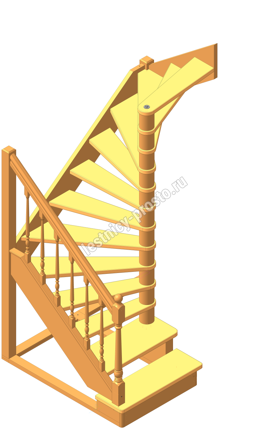 Базовый комплект включает в себя деревянные элементы лестницы без какого-либо покрытия. Лестница поставляется в разобранном виде.
