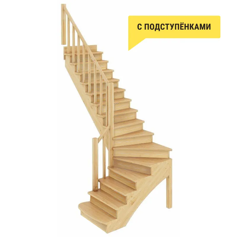 Базовый комплект включает в себя деревянные элементы лестницы и ограждения без какого-либо покрытия.