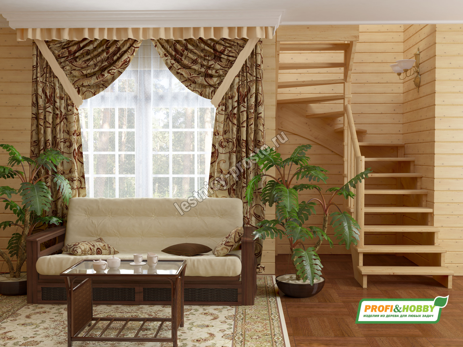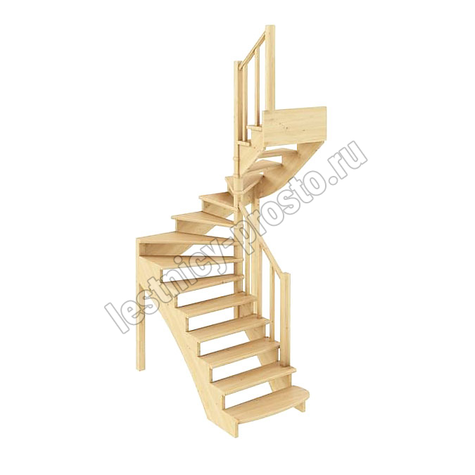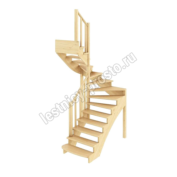 Базовый комплект включает в себя деревянные элементы лестницы и ограждения без какого-либо покрытия.