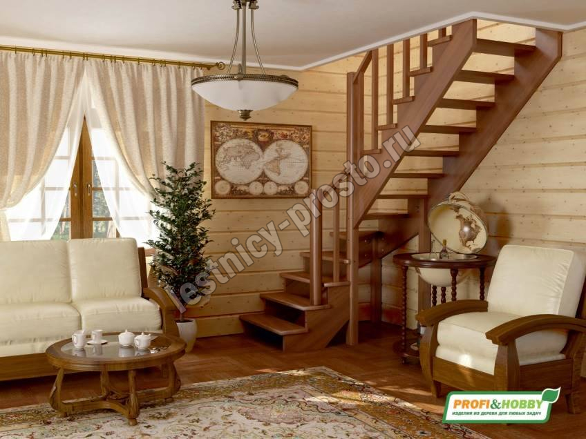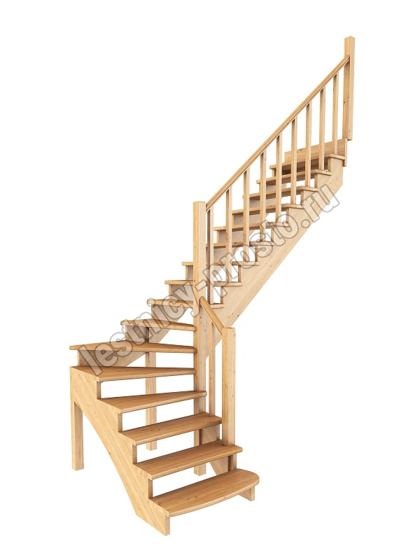 Базовый комплект включает в себя деревянные элементы лестницы и ограждения без какого-либо покрытия.