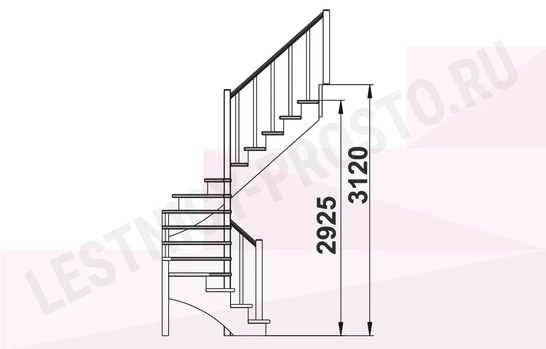 Базовый комплект включает в себя деревянные элементы лестницы и ограждения без какого-либо покрытия.
