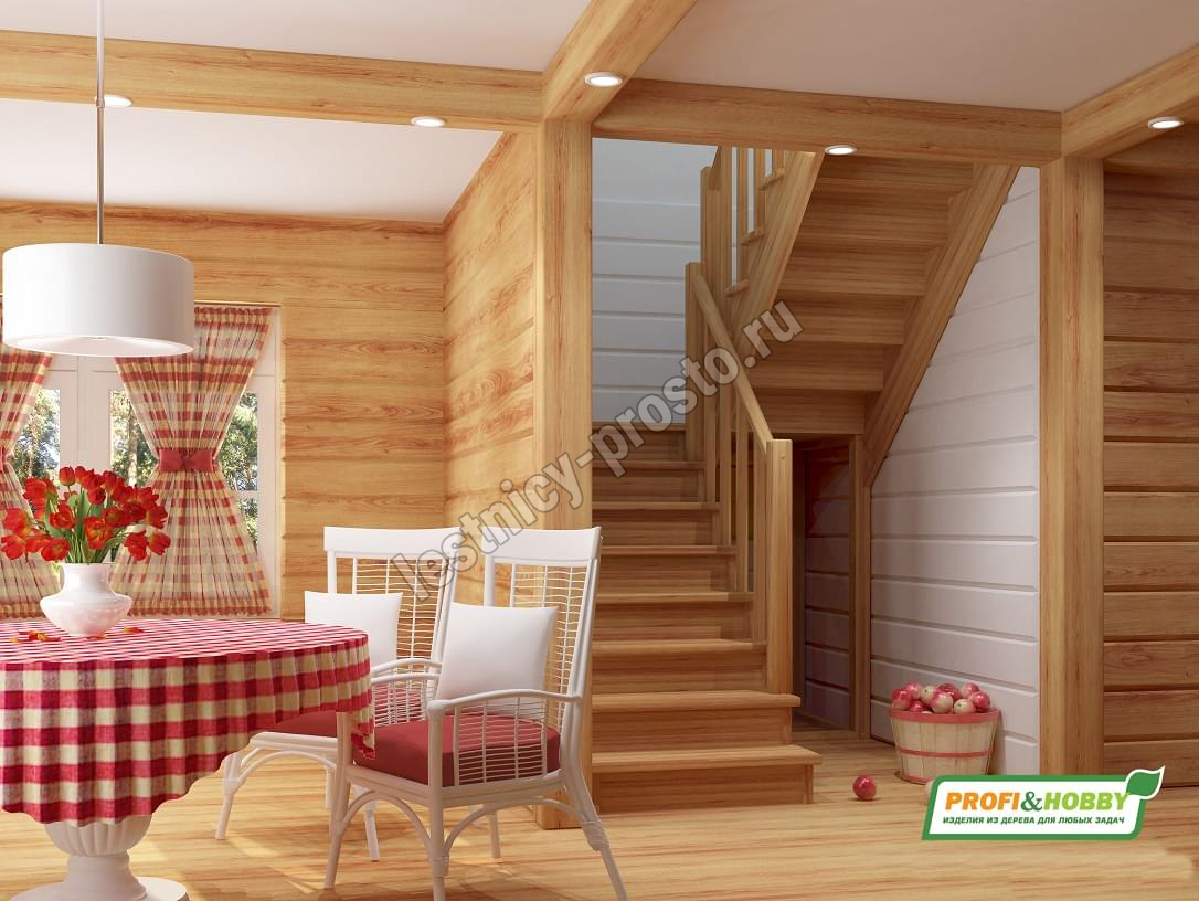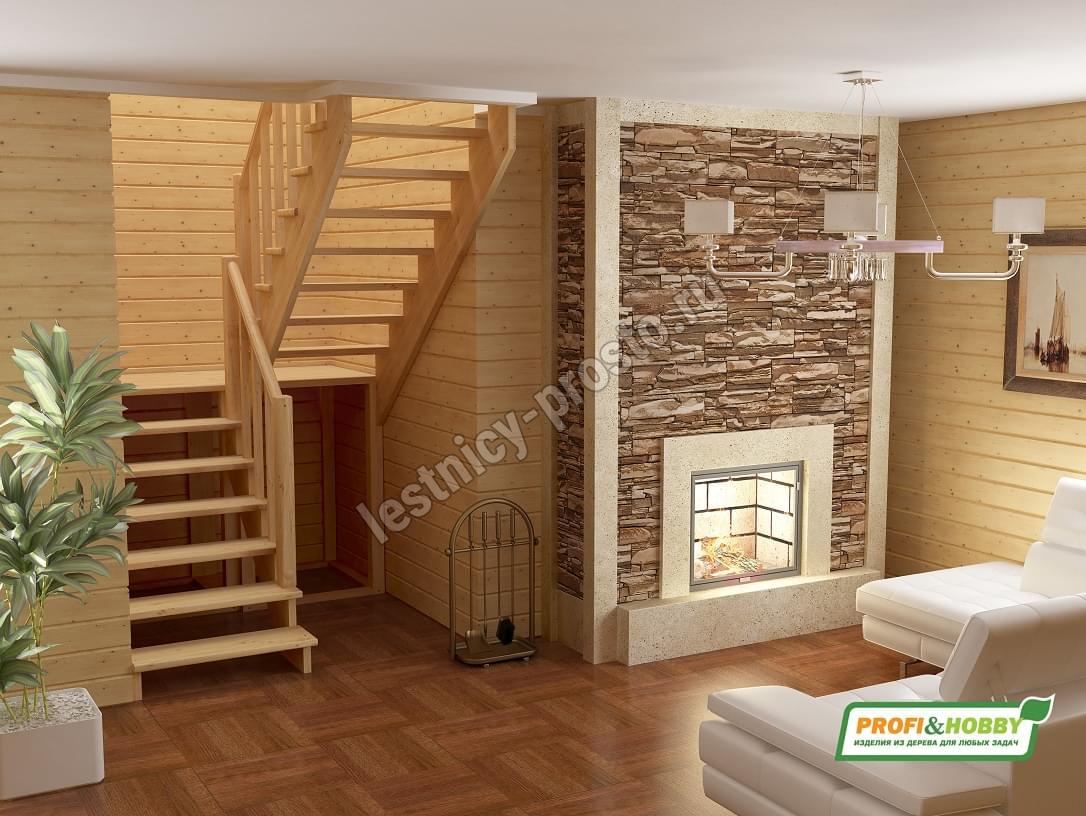 Лестница из сосны К-004М/3 с подступёнками