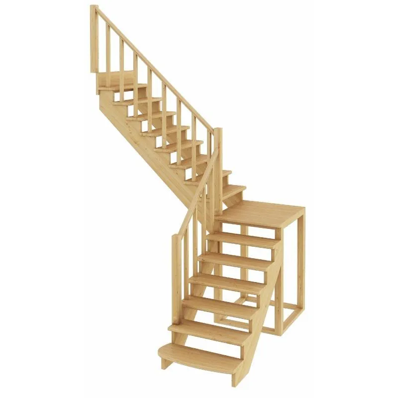 Базовый комплект включает в себя деревянные элементы лестницы и ограждения без какого-либо покрытия.