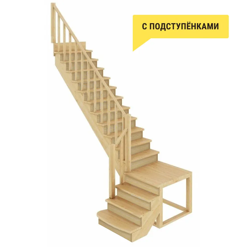 Базовый комплект включает в себя деревянные элементы лестницы и ограждения без какого-либо покрытия. Ограждение можно установить справа или слева.