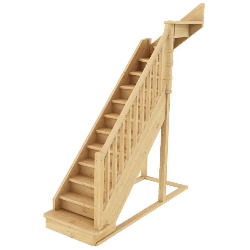 Ступени и поручень лестницы изготовлены из ясеня, остальные элементы из сосны.