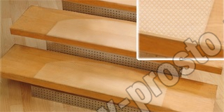 Защитные эластичные накладки на ступени лестницы предотвращают изнашивание, оберегают от случайных механических повреждений и служат безопасности, обеспечивая нескользящую поверхность. Нижняя поверхность накладки прилипает к чистой поверхности ступени лестницы и фиксируется без каких-либо дополнительных склеивающих материалов. Верхняя поверхность рифленая