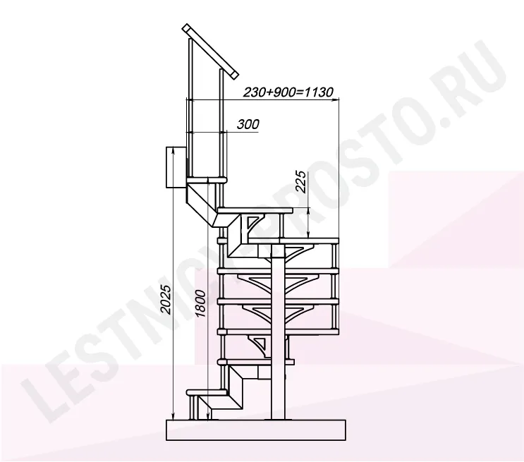 Высота лестницы 1800 - 2025 (8 ступеней) мм