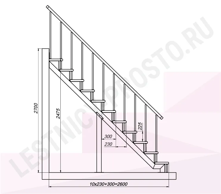 Высота лестницы 2475 - 2700 мм