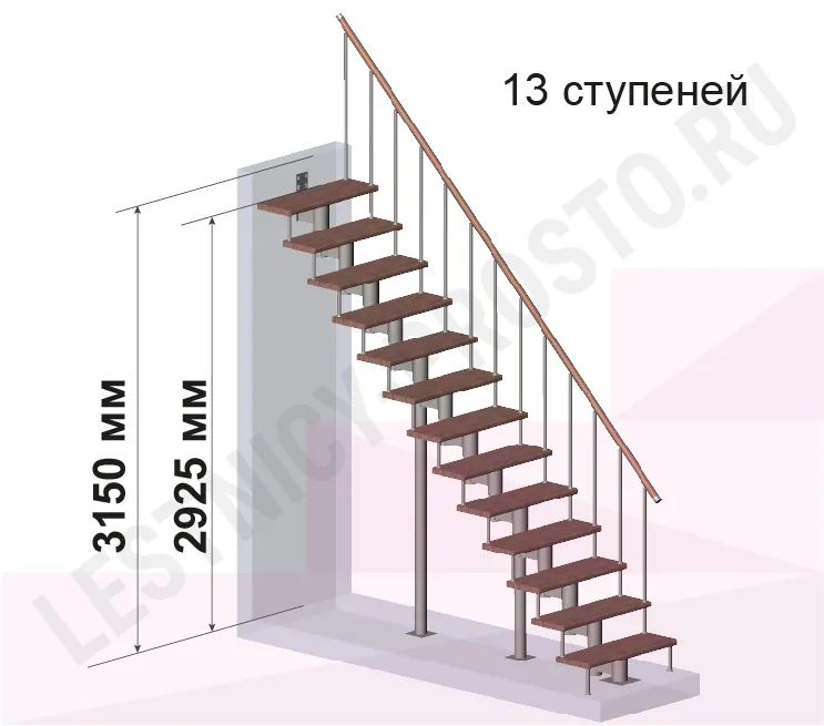 Высота лестницы 2925 - 3150 (13 ступеней) мм