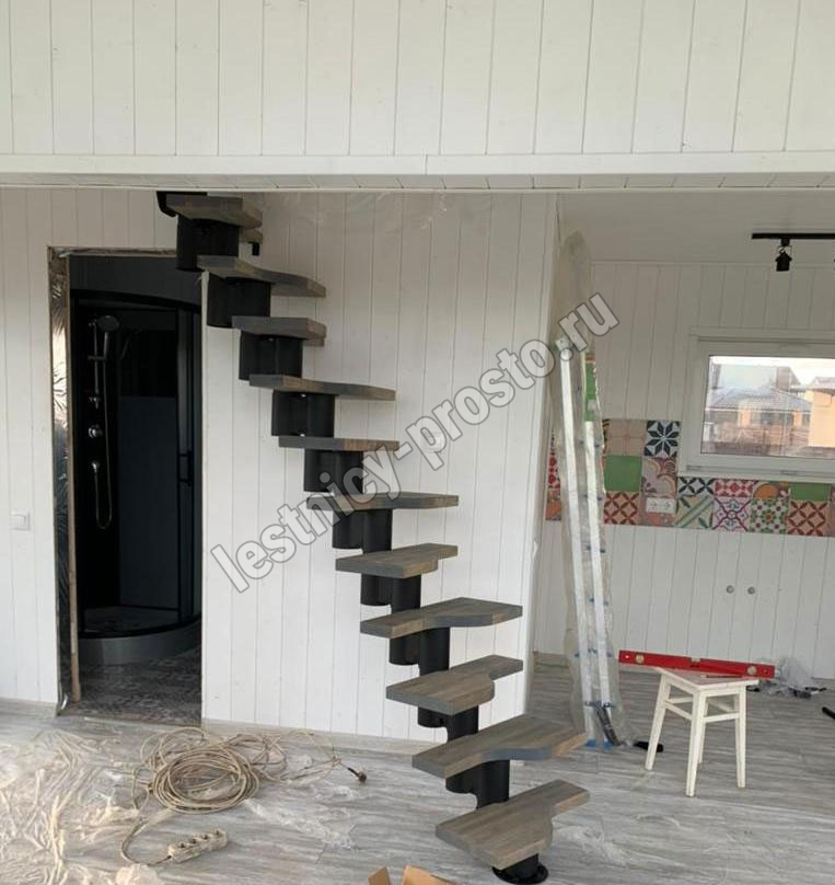 Лестница Prosto Urban Black гусиный шаг 700 мм, h180-264 см (10 ступеней), дуб