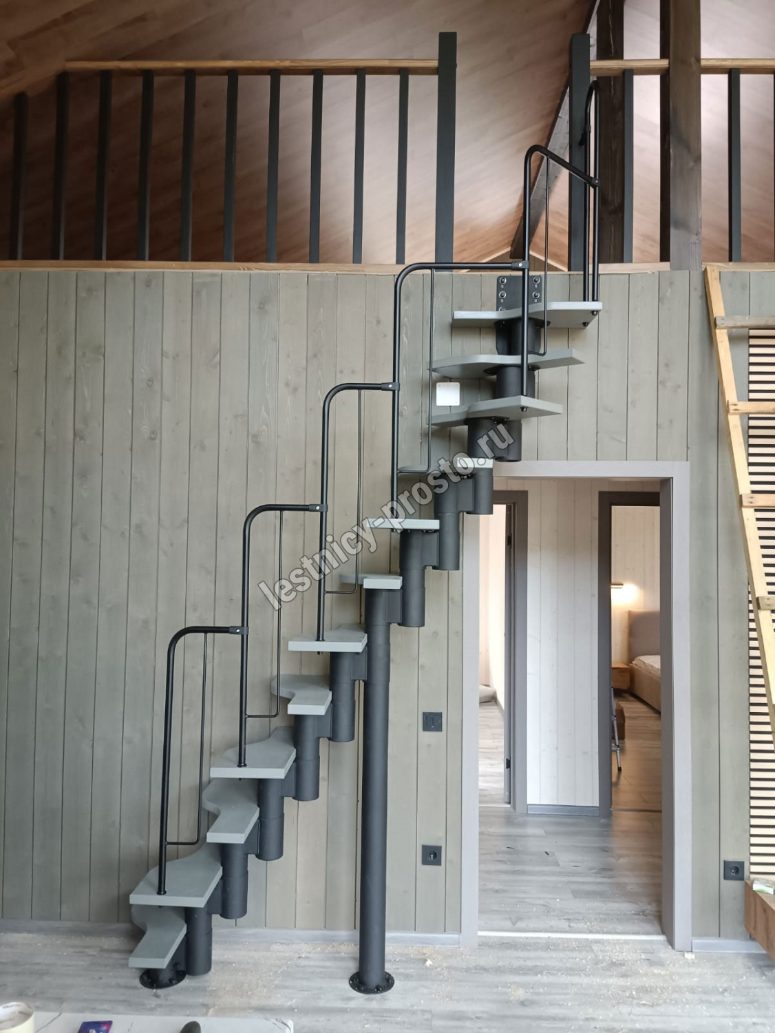 Лестница Prosto Urban Black гусиный шаг 600 мм, h180-264 см (10 ступеней), дуб