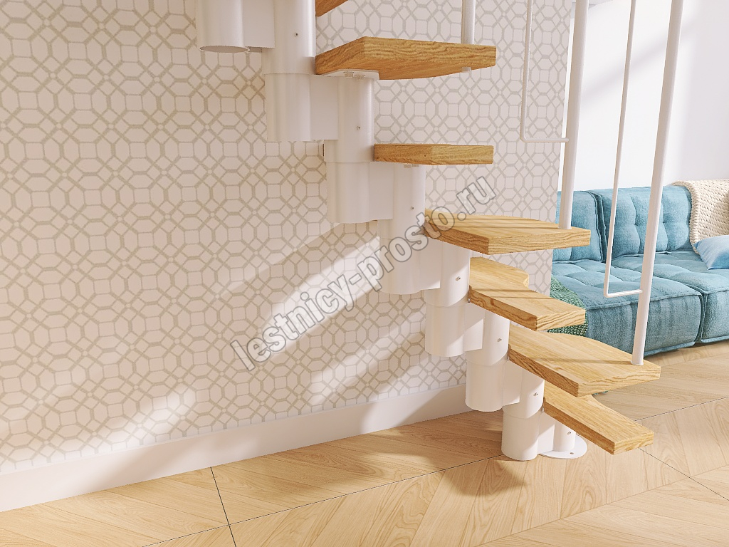 Лестница Prosto Urban White гусиный шаг 600 мм, h216-312 см (12 ступеней), ясень