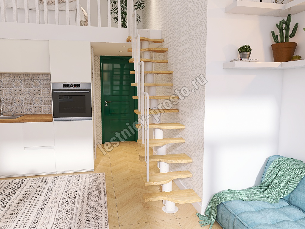 Лестница Prosto Urban White гусиный шаг 700 мм, h198-288 см (11 ступеней), бук