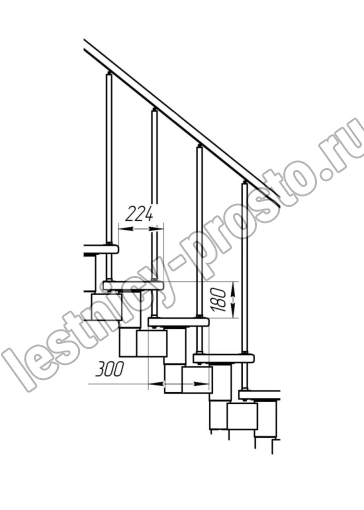 Модульная лестница Фаворит 180 2520-2660, Черный, Бук, Нержавеющая сталь
