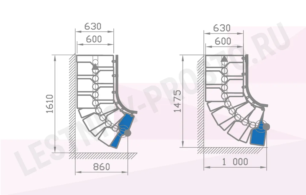 Высота лестницы 2220 - 3000 мм