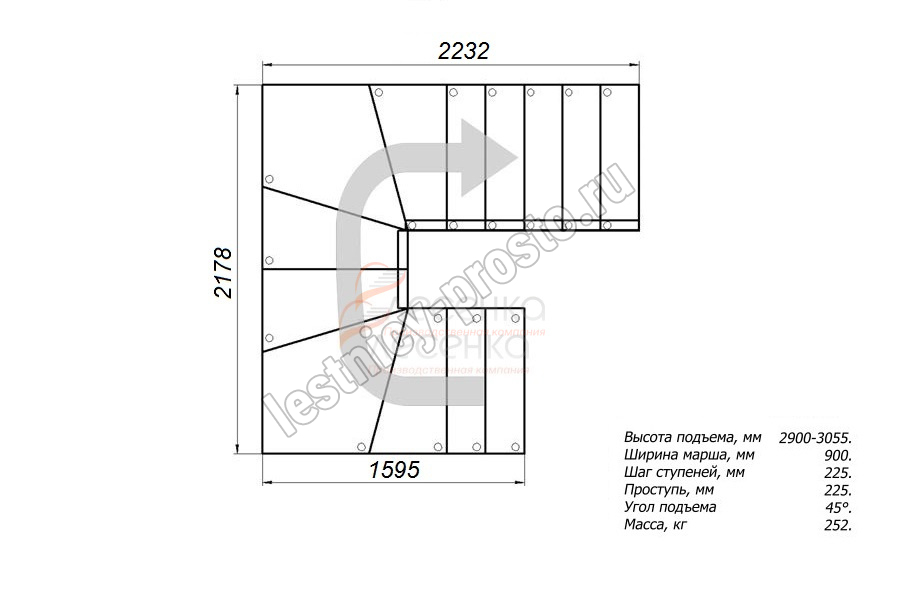 Модульная лестница Спринт 225 2925-3055, Черный, Бук, Нержавеющая сталь