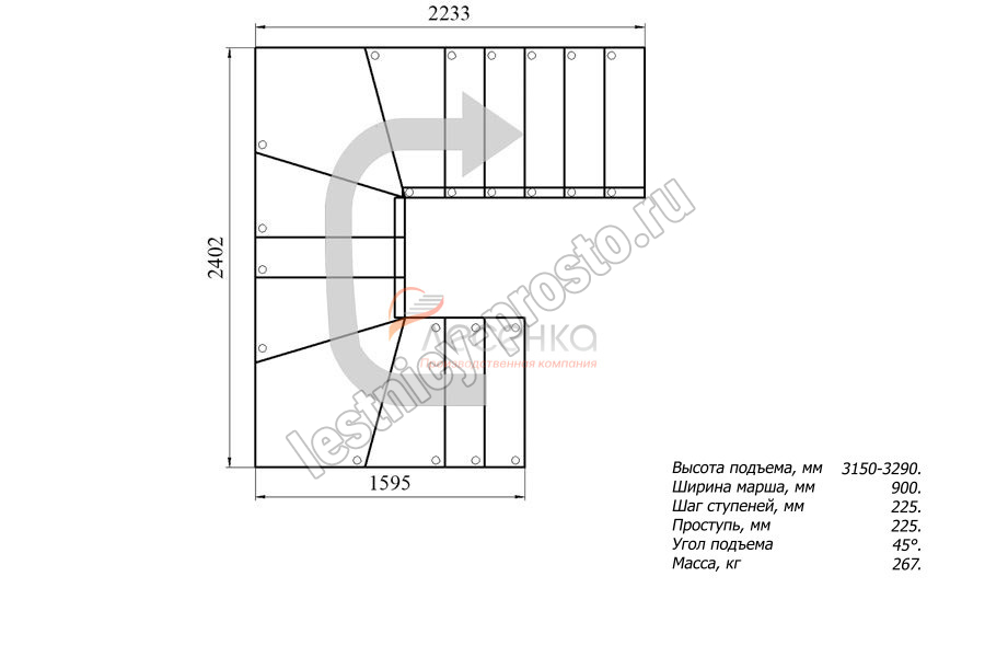 Модульная лестница Спринт 225 3150-3290, Белый, Сосна, Крашеная, Без Ступений