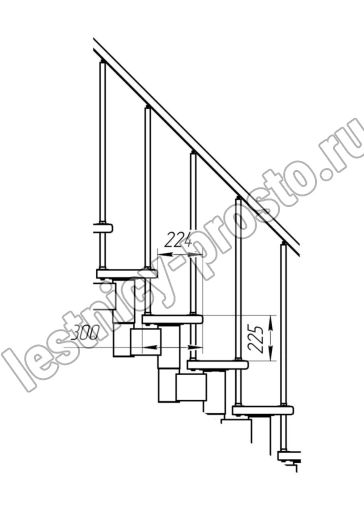 Модульная лестница Спринт 225 3150-3290, Черный, Сосна, Нержавеющая сталь