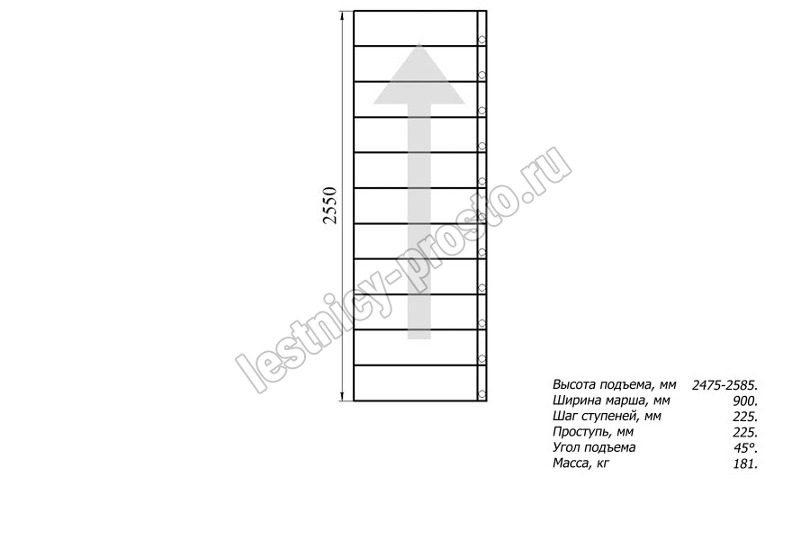 Модульная лестница Стандарт 2475-2585, Серый, Бук, Крашеная