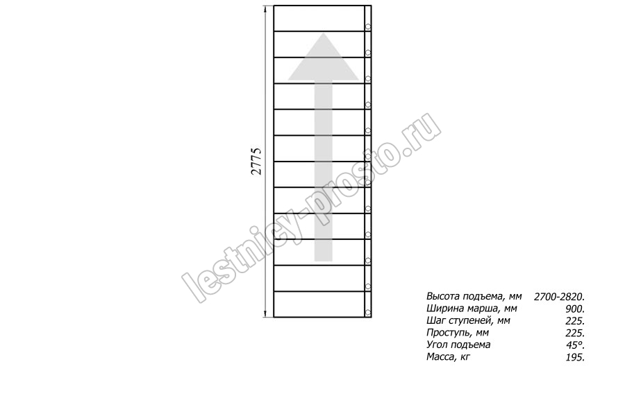Модульная лестница Стандарт 2700-2820, Серый, Бук, Крашеная