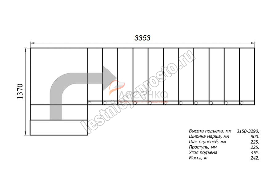 Модульная лестница Статус 225 3150-3290, Серый, Сосна, Крашеная, Без Ступений