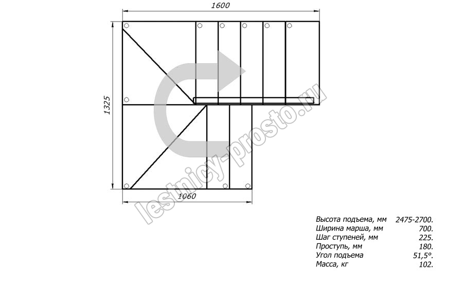 Модульная малогабаритная лестница Эксклюзив 2475-2700, Белый, Сосна, Крашеная, Без Ступений