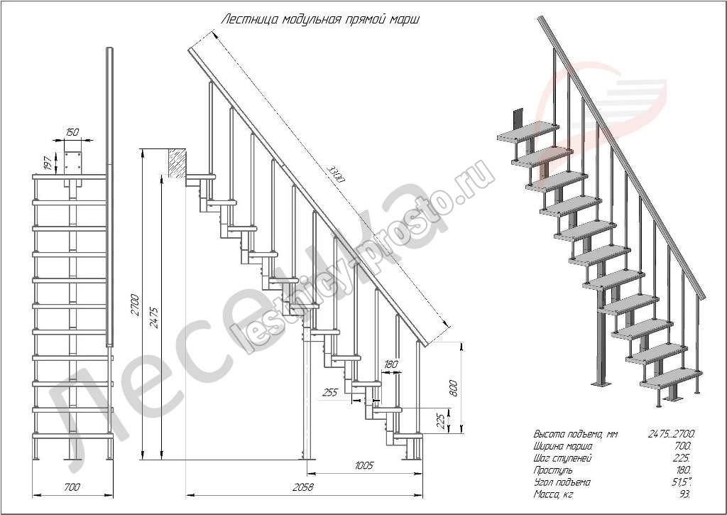 Высота лестницы 2475 - 2700 мм
