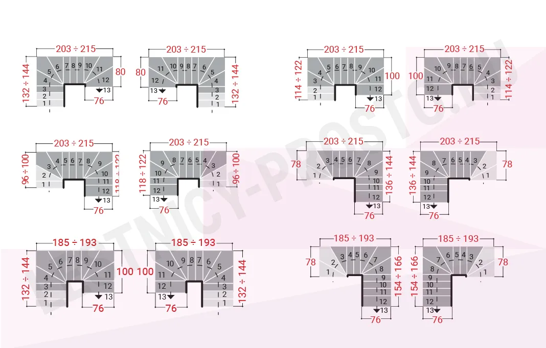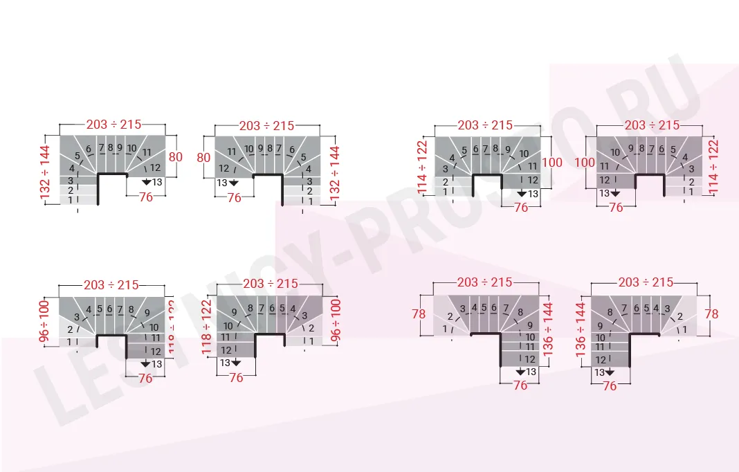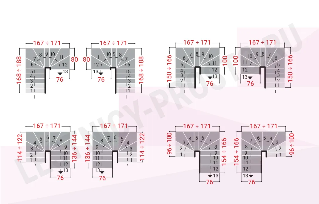 Ширина ступени регулируется при монтаже в пределах 180 - 220 мм