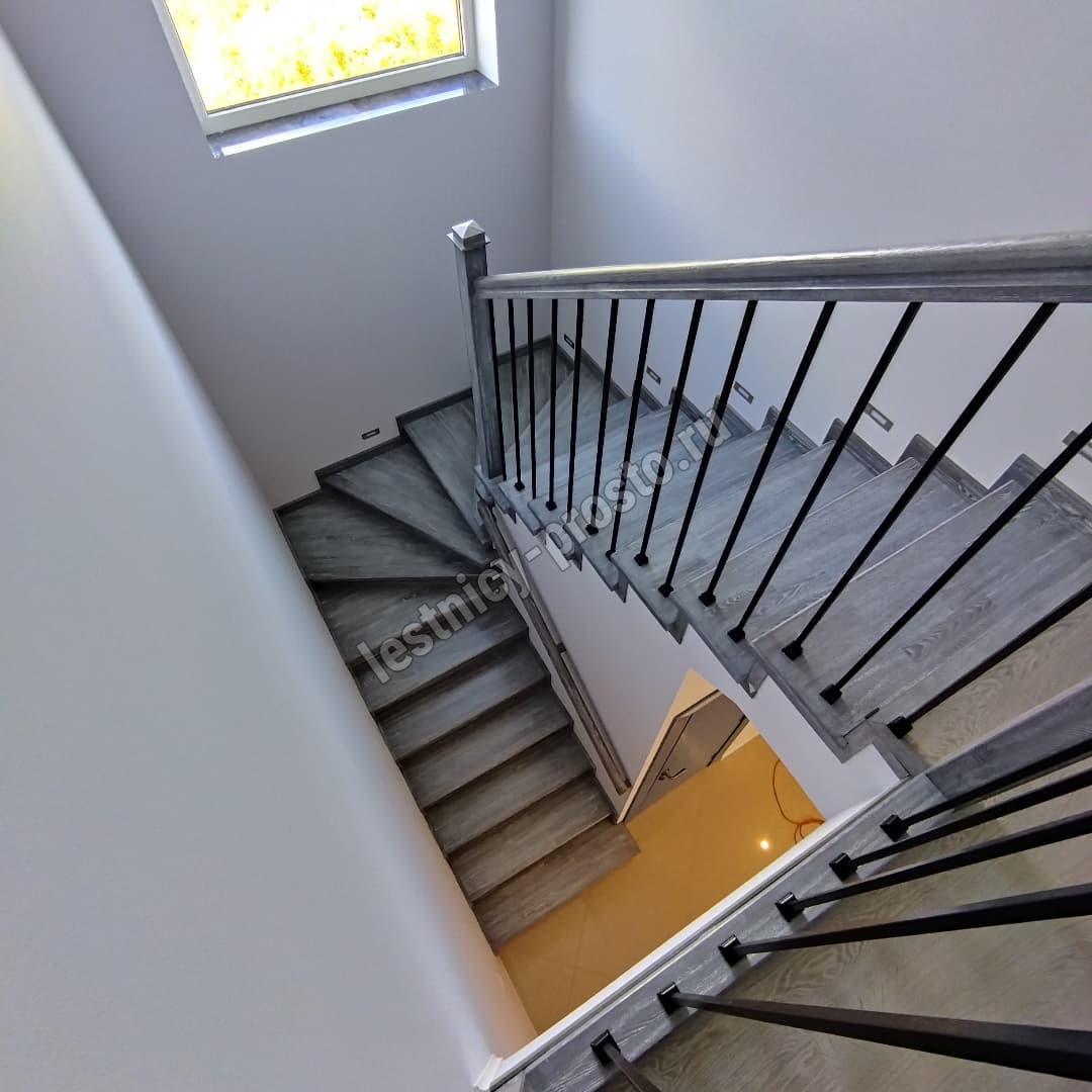 Подступенники, фальш-косоуры и сапожки (пристенной плинтус) выполнены из дуба.