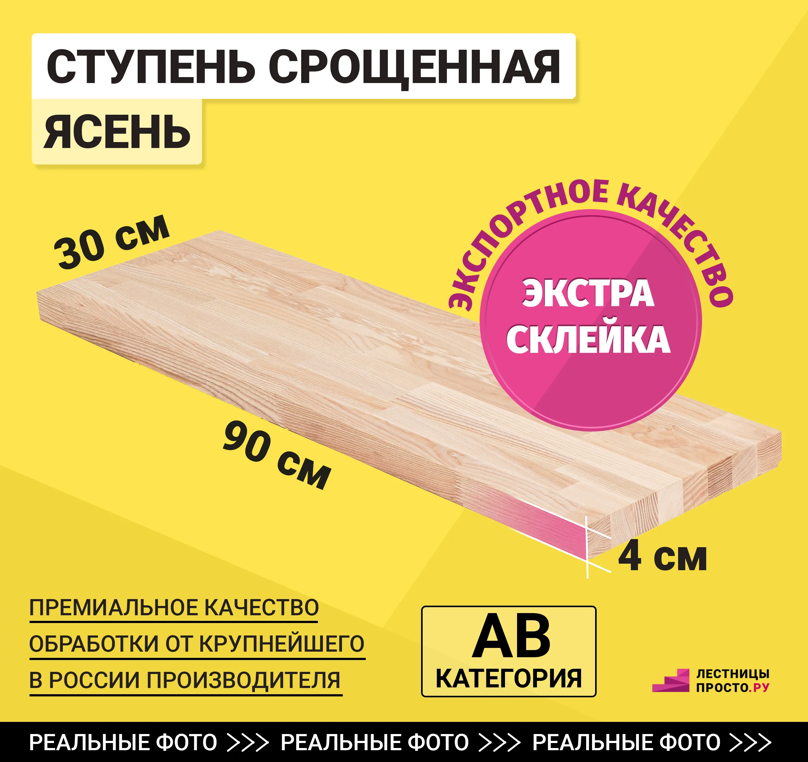 Данная ступень изготовлена из срощенного ясеня категории А/В.
