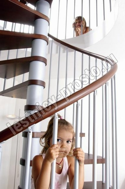 Перила состоят из стальных балясин, окрашенных в черный (RAL 9017), белый (RAL 9010) или серый (RAL 9006). Концы черные для черной лестницы и серые для серой и белой лестниц.