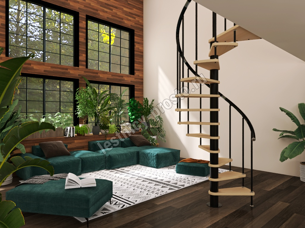 Винтовая лестница Prosto Spiral Black D120см, h325.7-369.8 см, бук