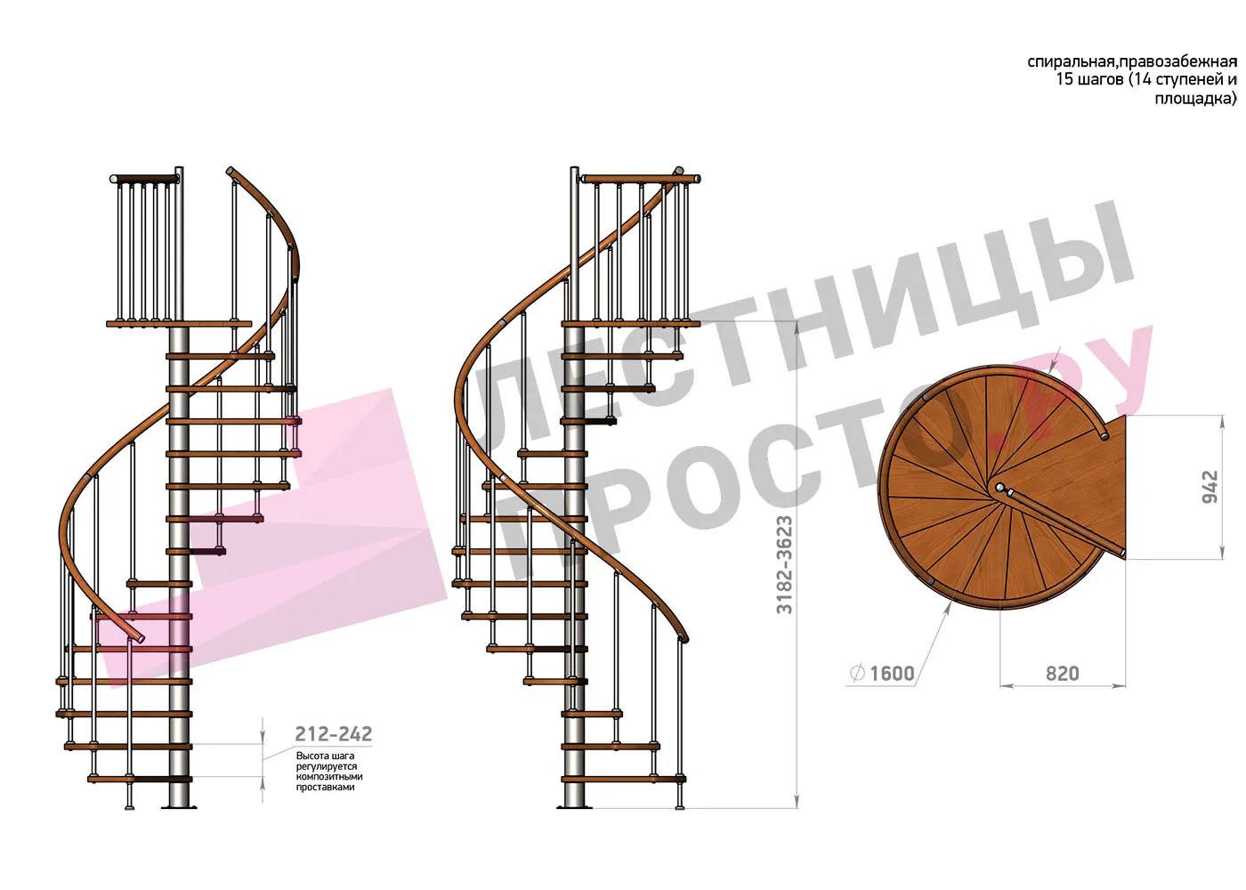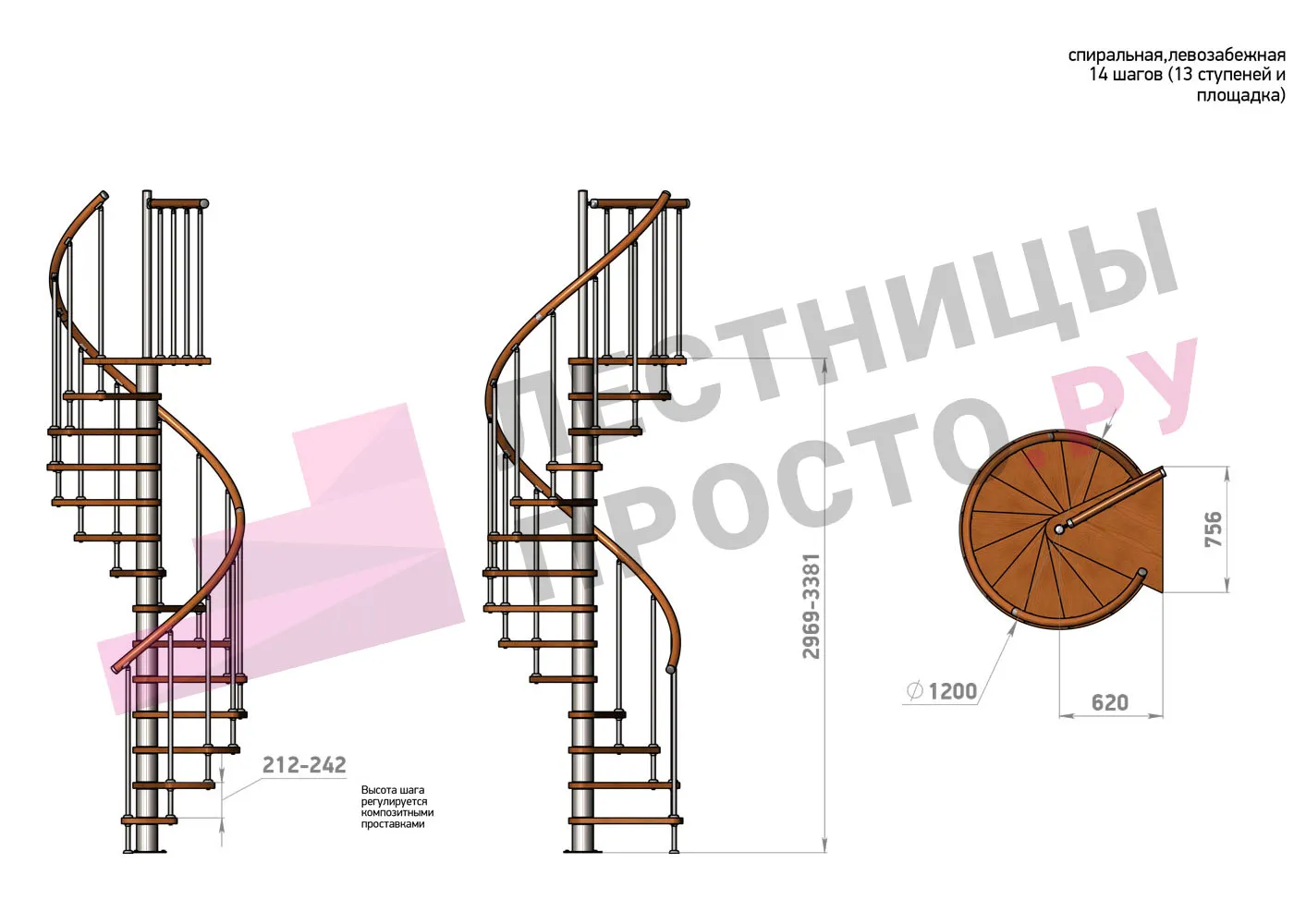 Винтовая лестница Prosto Spiral Black/Высота 3182 - 3623 мм