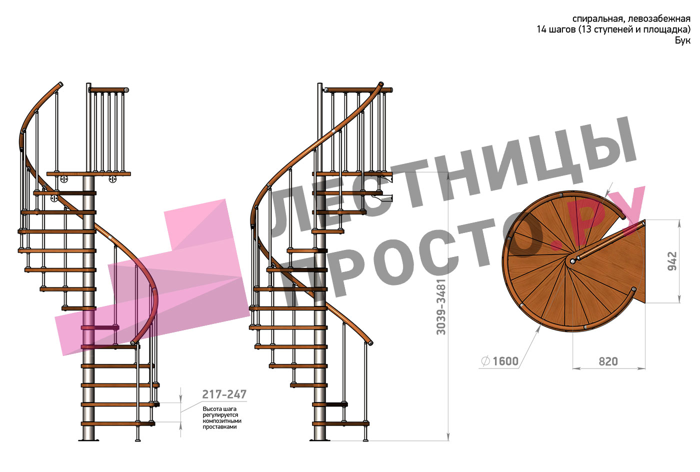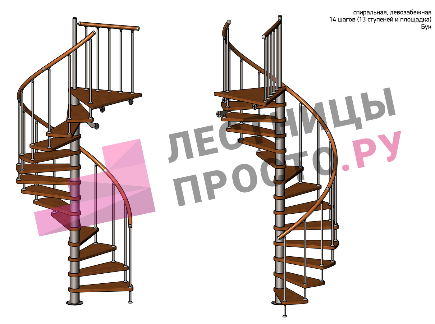 Винтовая лестница Prosto Spiral White D160см, h303.9-348,1 см, бук