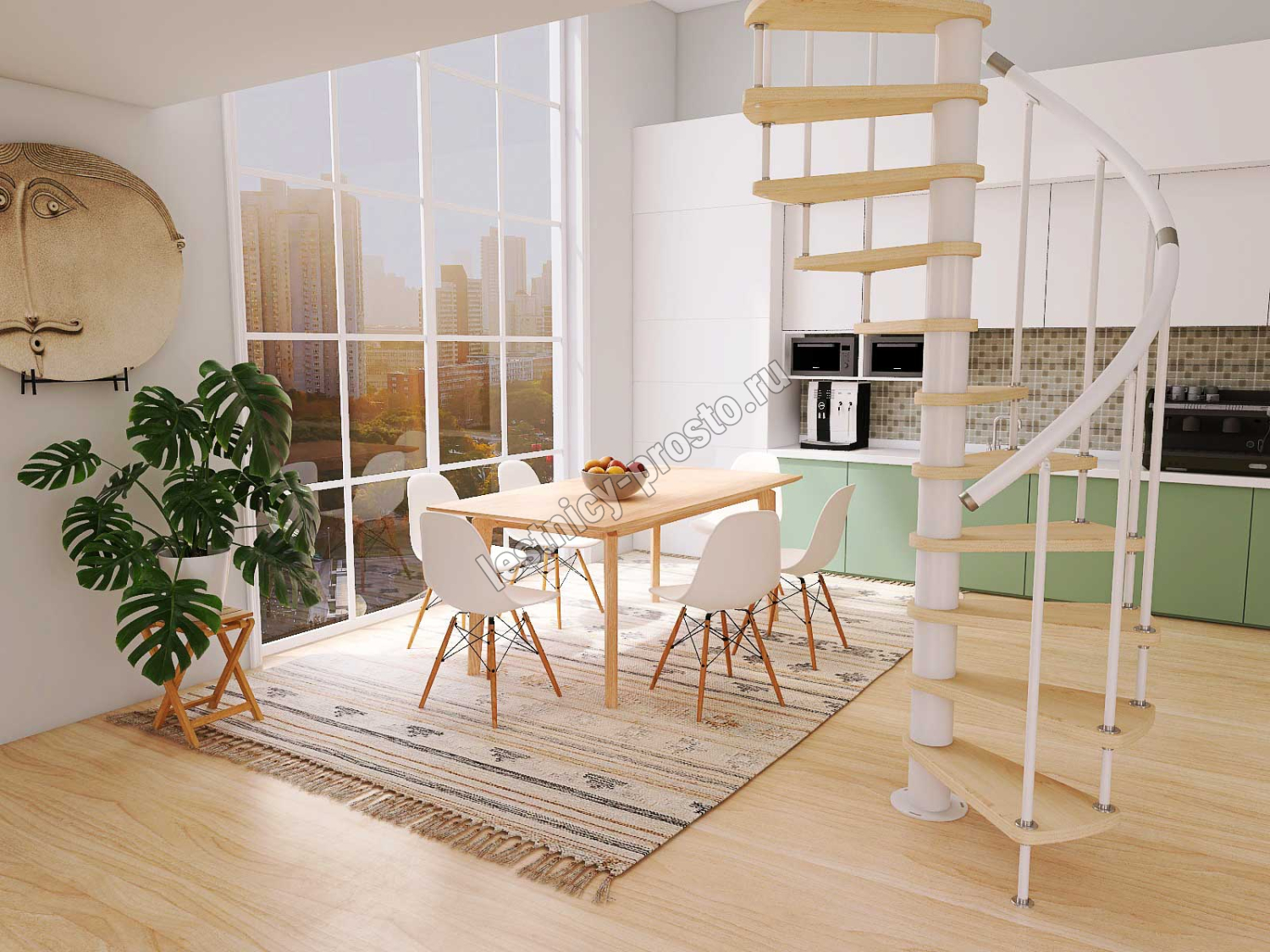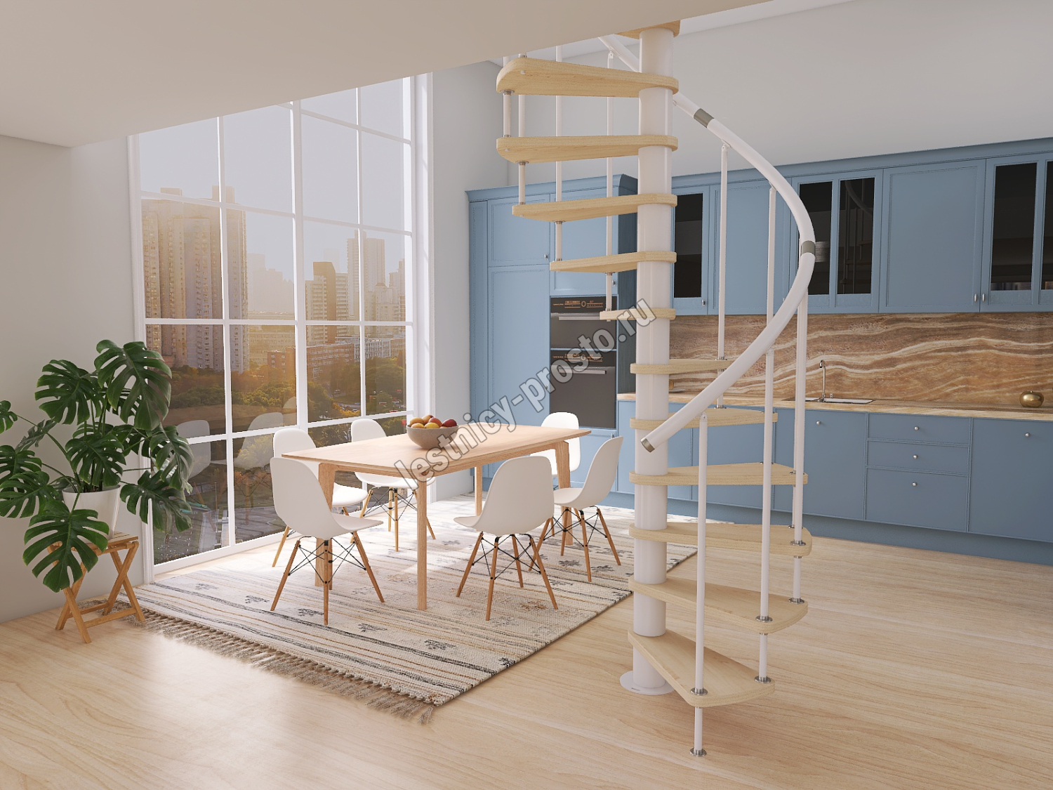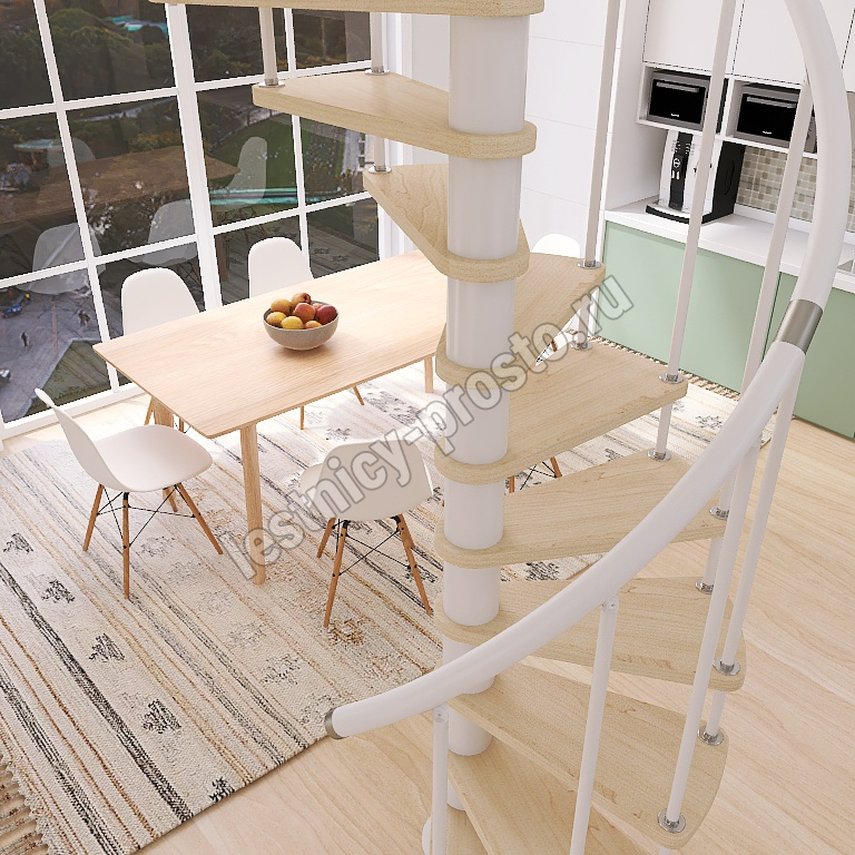 Винтовая лестница Prosto Spiral White D160см, h325.7-369.8 см, бук