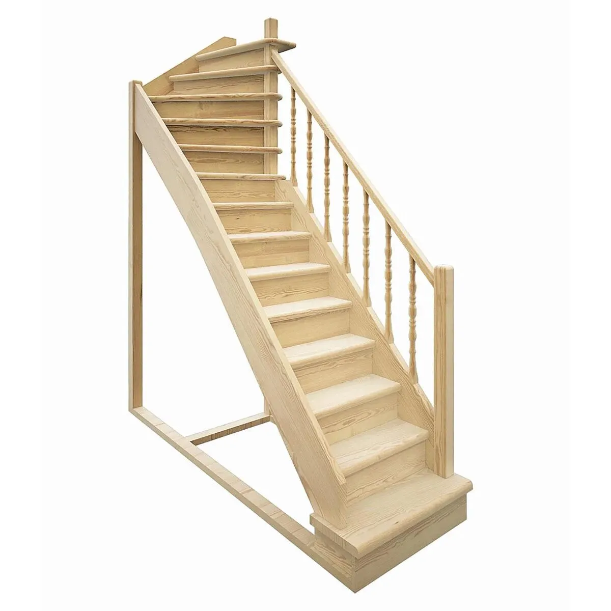 Лестница представлена в двух вариантах: с поворотом направо и с поворотом налево. Благодаря возможности регулировать высоту шага с помощью пластиковых вставок (входят в базовый комплект), высоту лестницы можно варьировать в пределах от 2860 до 3090 мм. Кроме того, купив дополнительную секцию для этой лестницы, можно поднять высоту до 3320 мм. Поручень изготовлен из массива бука в тон ступеням. Ступени и поручень покрыты износостойким защитным лаком.