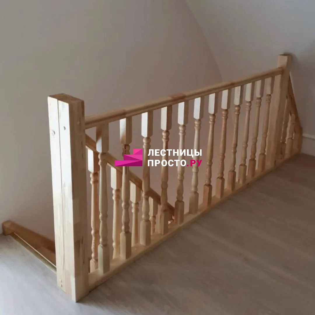 Лестница из сосны в частном доме с дополнительной балюстрадой