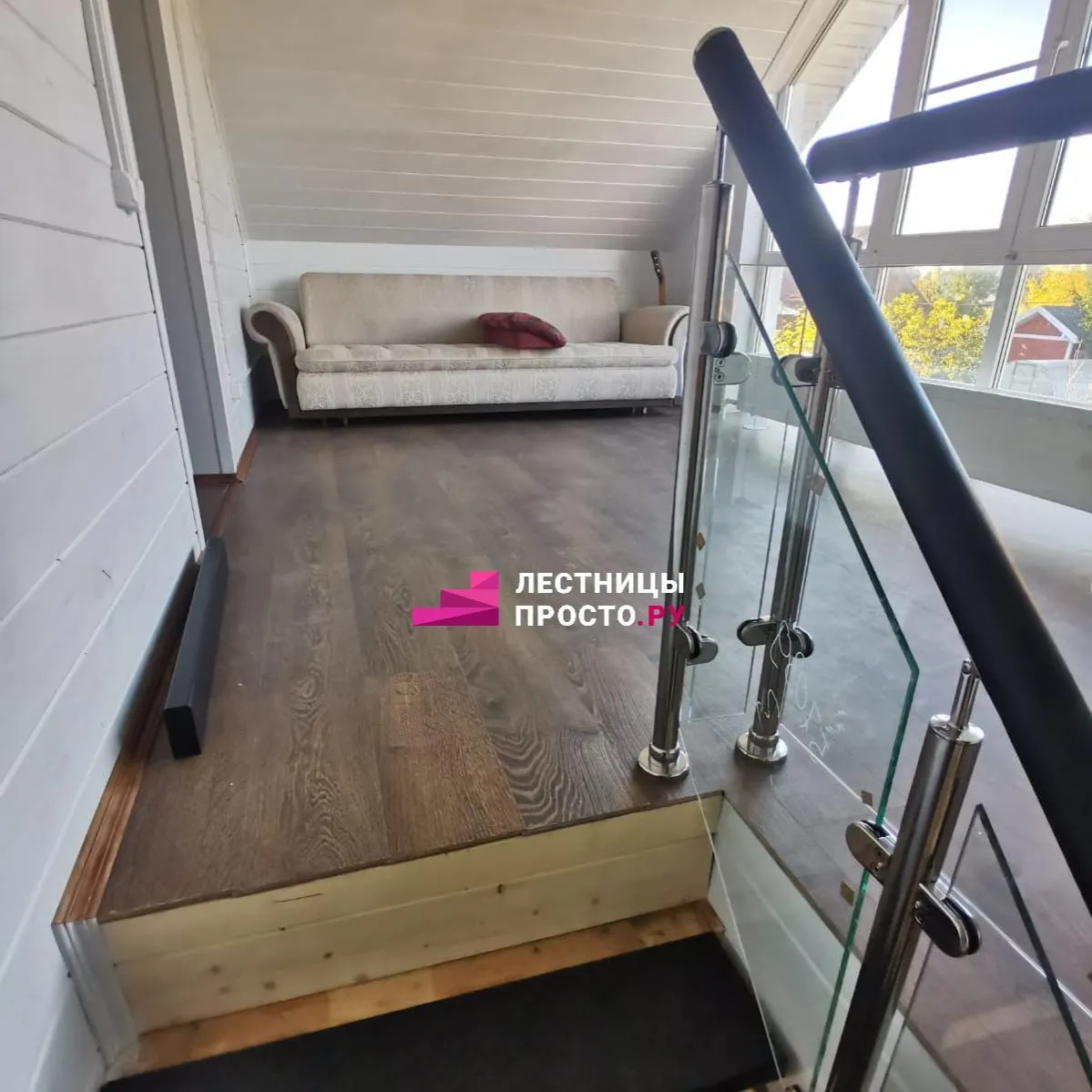 Металлическая лестница с ограждением из стекла в частном доме LP-3103